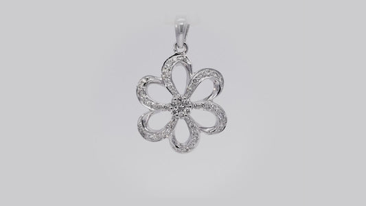 18K WHITE GOLD DIAMOND FLOWER PENDANT