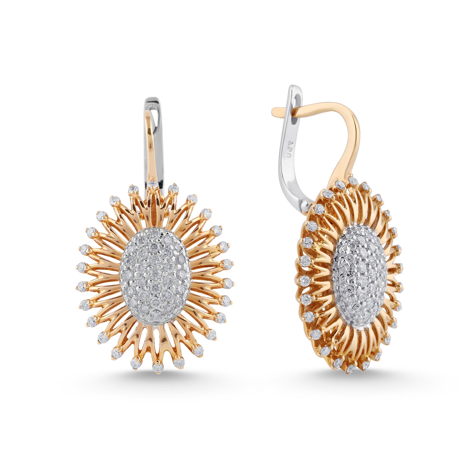 Crafted in 18K yellow gold and weighing 8.015 grams, these earrings dazzle with 0.91 carats of diamonds. They embody golden luminescence, offering a radiant display of light that mirrors the first rays of dawn.