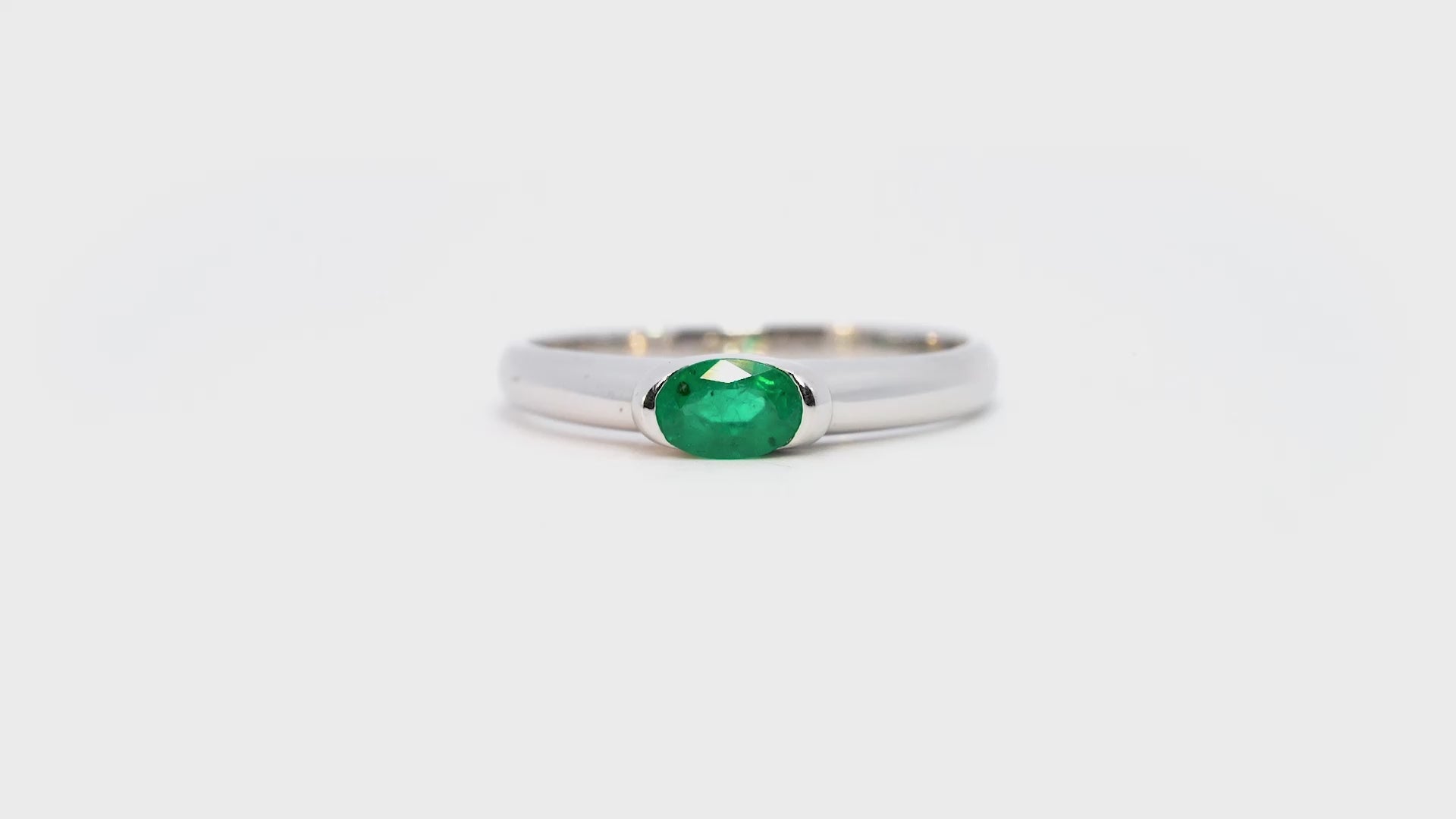 This 18K white gold ring presents an emerald in a setting that balances simplicity with elegance. The harmonious design accentuates the emerald's vibrant color, offering a piece that's both striking and subtly sophisticated.