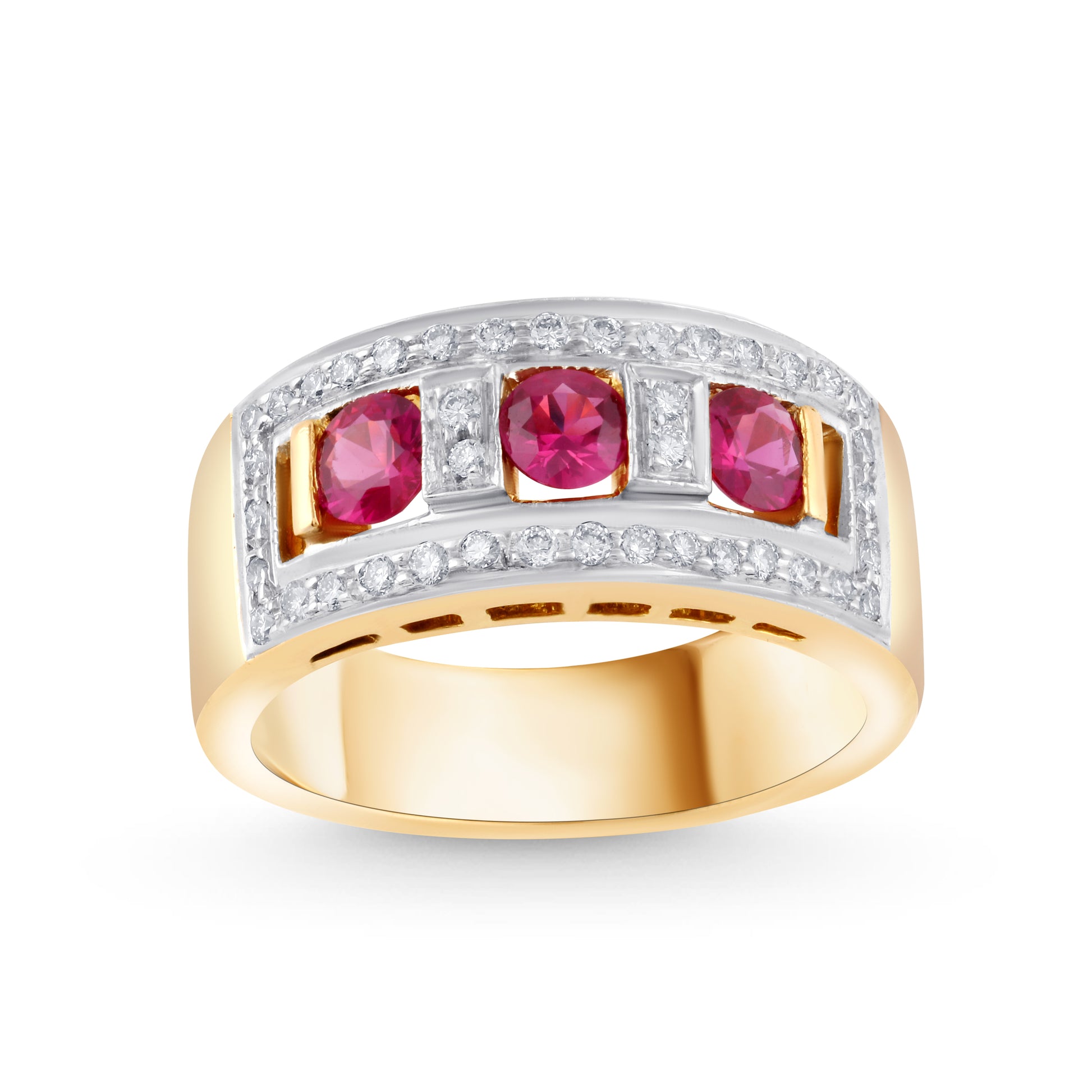 Make a bold statement with this stunning 18K yellow gold ring adorned with a vibrant ruby. The intricate detailing of the gold setting adds a touch of sophistication to this eye-catching piece.