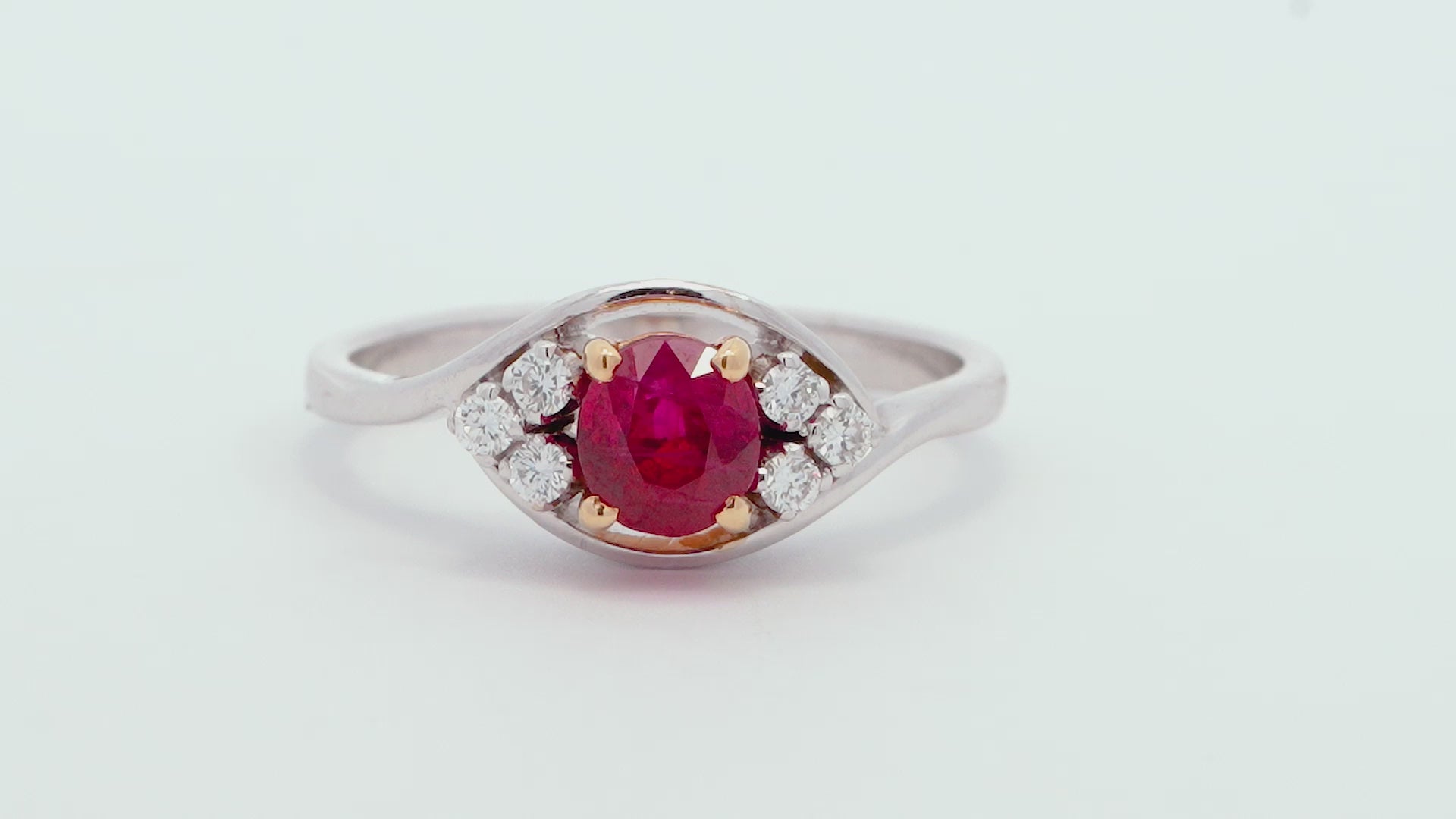 Embrace elegance with this 18K white gold ring adorned with a radiant ruby.