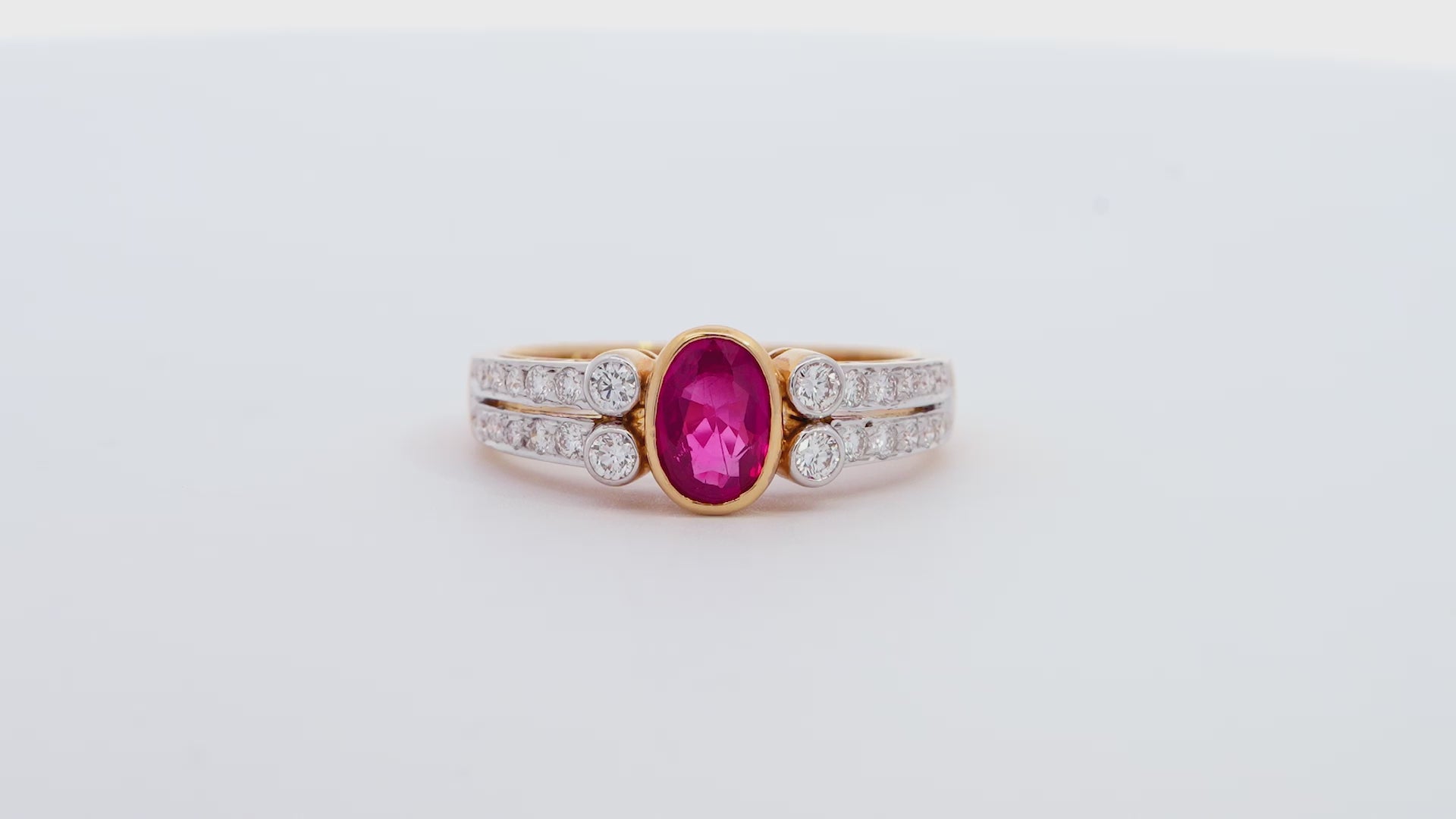 Adorn yourself with sophistication with this 18K yellow gold ring featuring a stunning ruby centerpiece.