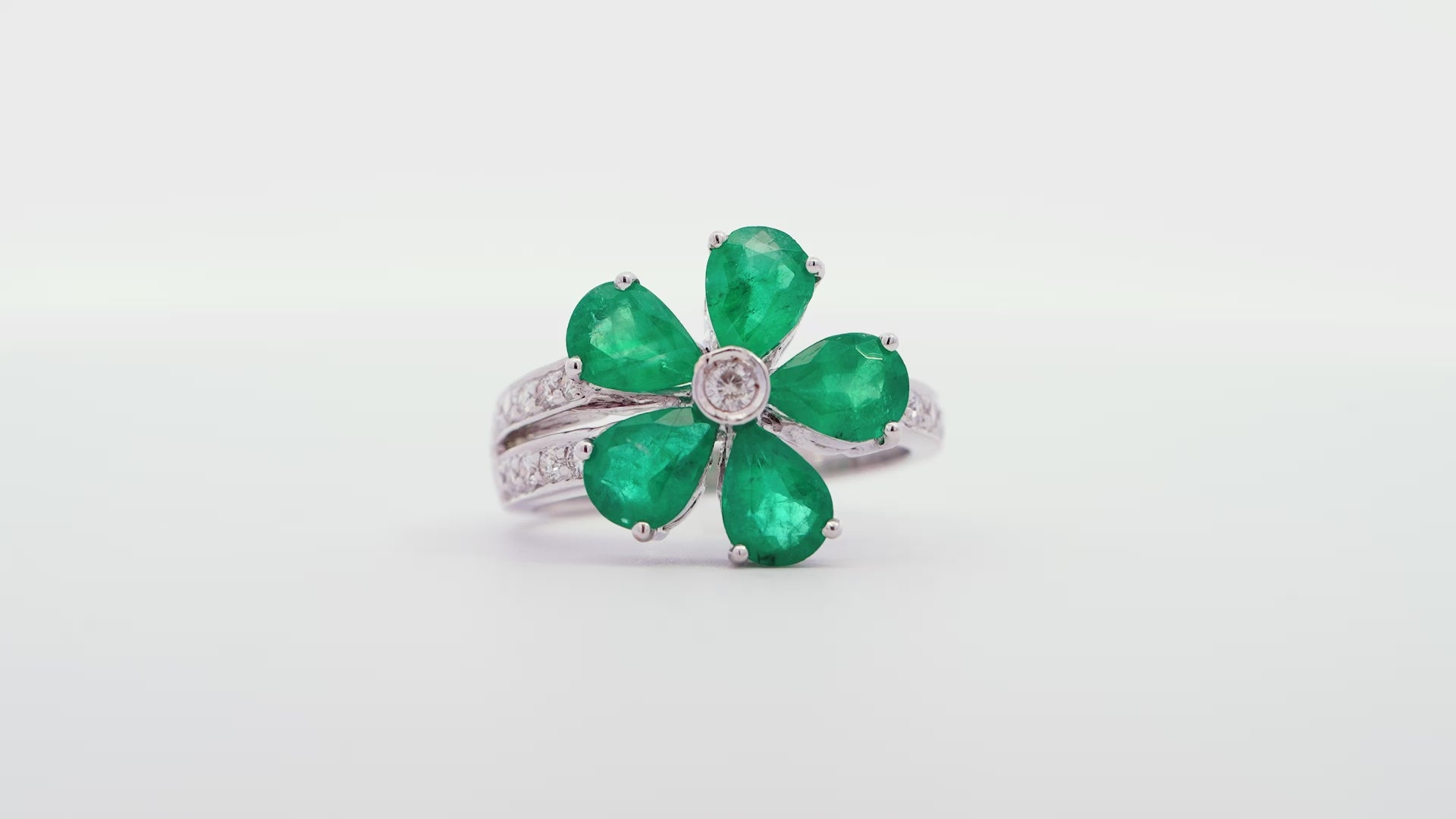 This 18K white gold ring is adorned with an emerald that shines like a star within a constellation. Its celestial beauty and the cool sheen of white gold create a piece that's meant for those who dream of the stars and the infinite beyond.